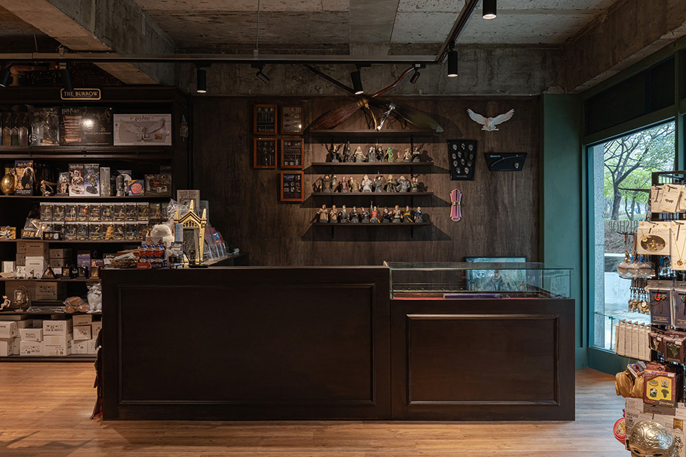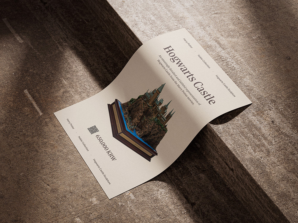 해리포터 굿즈 전문 상점 ‘제리샵’의 제품 포스터 디자인입니다. 포스터는 베이지 톤 배경과 다크 브라운 타이포그래피를 메인 그래픽 요소로 구성했습니다. 베이지 톤은 매장의 어두운 우드 인테리어와 인더스트리얼 무드 속에서 은은한 환기 역할을 하며, 다크 브라운 서체는 고급스럽고 클래식한 분위기를 더합니다. 매장이 자칫 무겁게 느껴질 수 있는 톤을 포스터가 밝게 균형 잡아주어, 공간 전체의 조화를 이루는 동시에 전시품처럼 제품을 더욱 돋보이게 합니다. 또한 불필요한 장식을 덜어내고 누끼만으로 제품이 충분히 주목될 수 있도록 디자인하여, 매장의 ‘뮤지엄적 경험’을 그대로 이어가도록 완성했습니다.